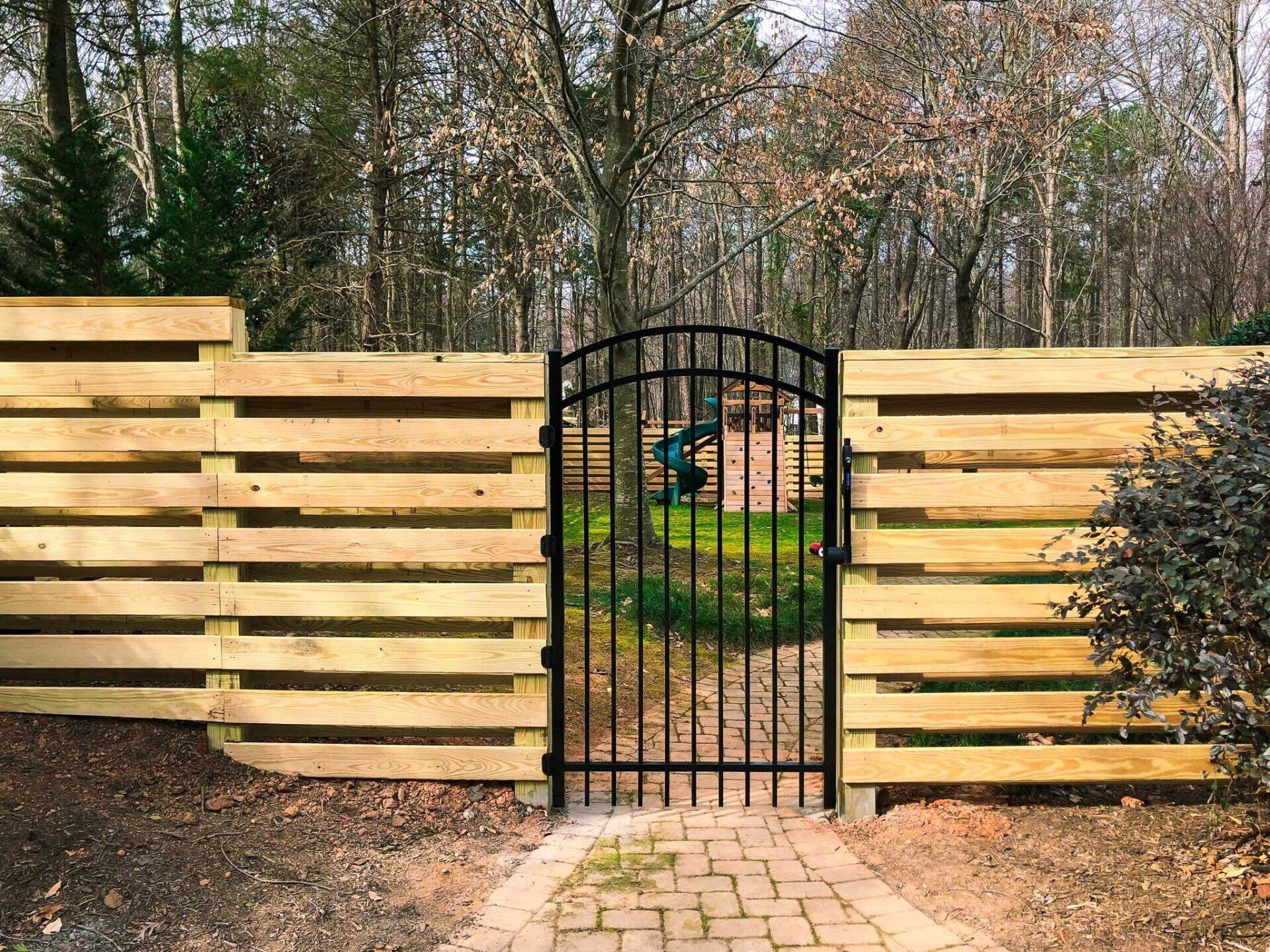View photos of fences and gates our team has installed all over the greater Charlotte area in both North and South Carolina. You will find photos of aluminum fencing, wood fencing, vinyl fencing, stone fence posts, privacy fencing, custom gates, and more.